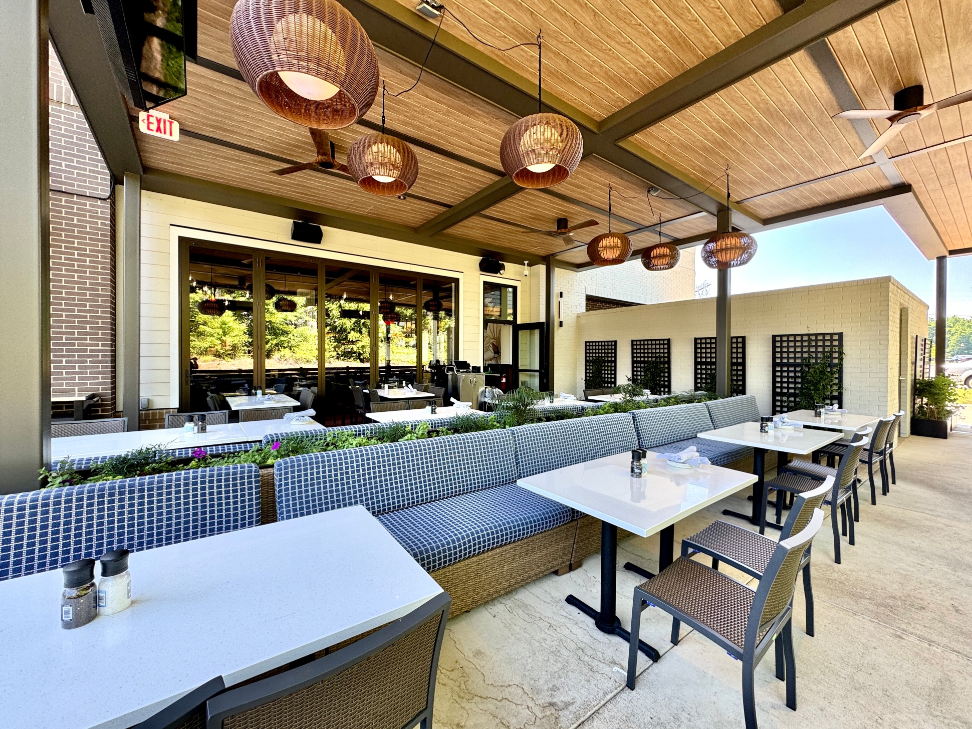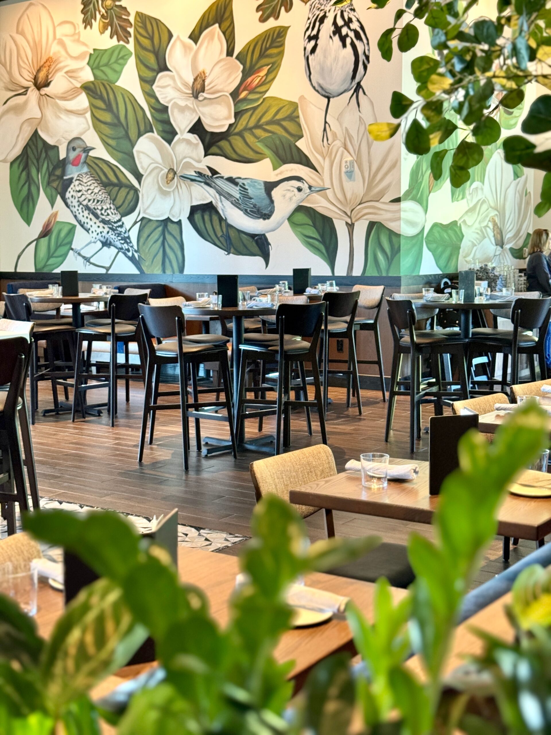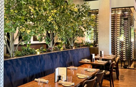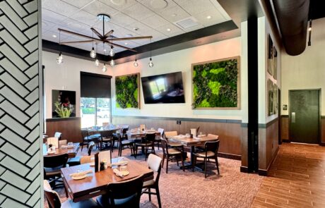 Burton’s Grill & Bar at Birkdale Place offers a stunning ambiance, featuring a modern and sophisticated design that is beautiful both inside and out. The interior has a modern yet timeless design, featuring a spacious 6,085-square-foot layout with 152 seats, accented by white quartz and living plant walls. A large-scale Audubon mural and lush greenery add a vibrant, elegant touch, striking the perfect balance between upscale and comfort. The exterior welcomes guests with a refined facade, leading into an interior that balances upscale elegance with a comfortable, inviting atmosphere. The design seamlessly connects the indoors with an expansive 93-seat outdoor patio through sliding doors, offering two al fresco dining options—one covered with fans and heaters, and an open section with umbrellas—perfect for year-round enjoyment. The restaurant also features a lively 28-seat bar and private dining rooms for special events. The restaurant boasts stylish and contemporary decor, combining warm lighting, rich textures, and elegant finishes throughout the dining areas and the bar. The thoughtful design creates distinct spaces for different dining experiences, whether guests are looking for a lively evening at the bar or a more intimate dinner. Beyond the appealing atmosphere, Burton’s Grill & Bar is known for its top-notch, scratch-made food, which includes a wide array of entrees, salads, and vegetarian options. The menu features classic American cuisine prepared with an emphasis on fresh, high-quality ingredients, catering to various dietary needs. The restaurant is also noted for its extensive gluten-free menu and ability to customize most dishes to accommodate dietary needs. With its beautiful setting and excellent food, this Burton’s Grill & Bar location provides a memorable dining experience that lives up to its reputation.