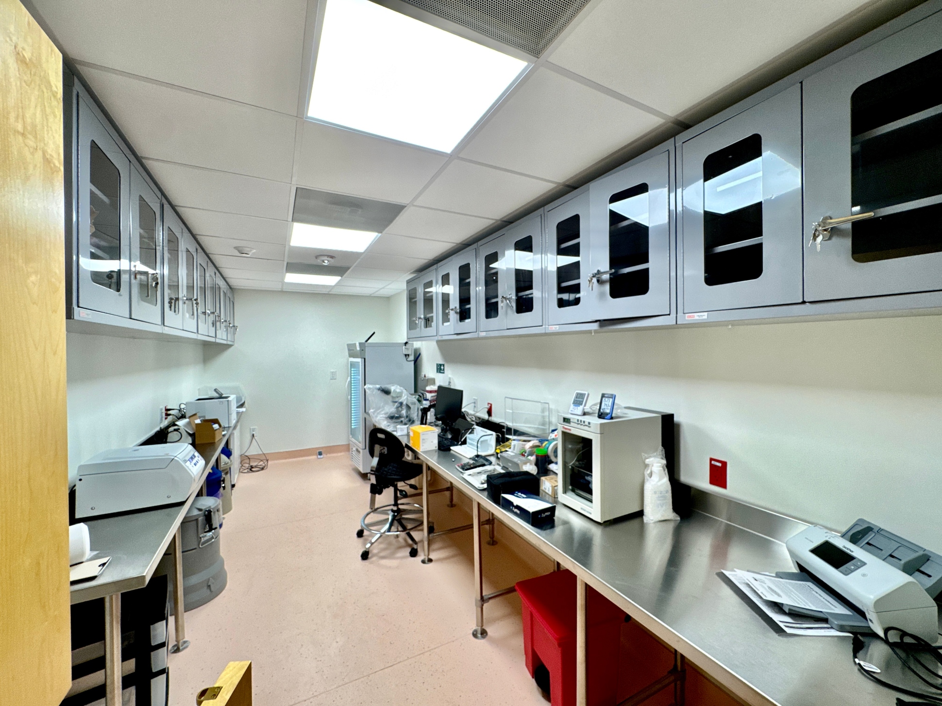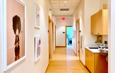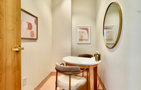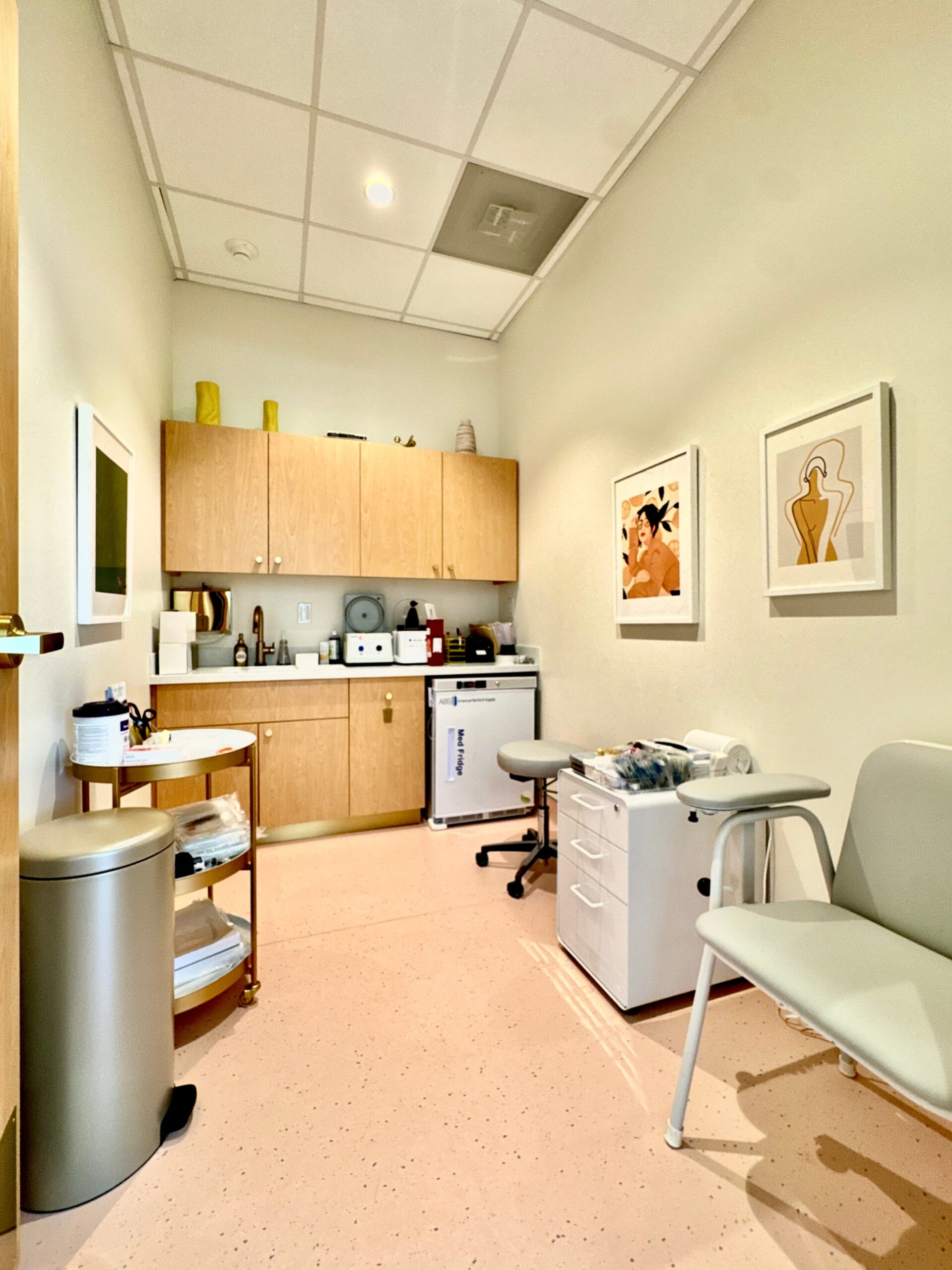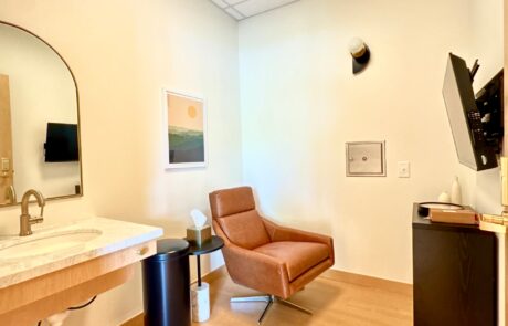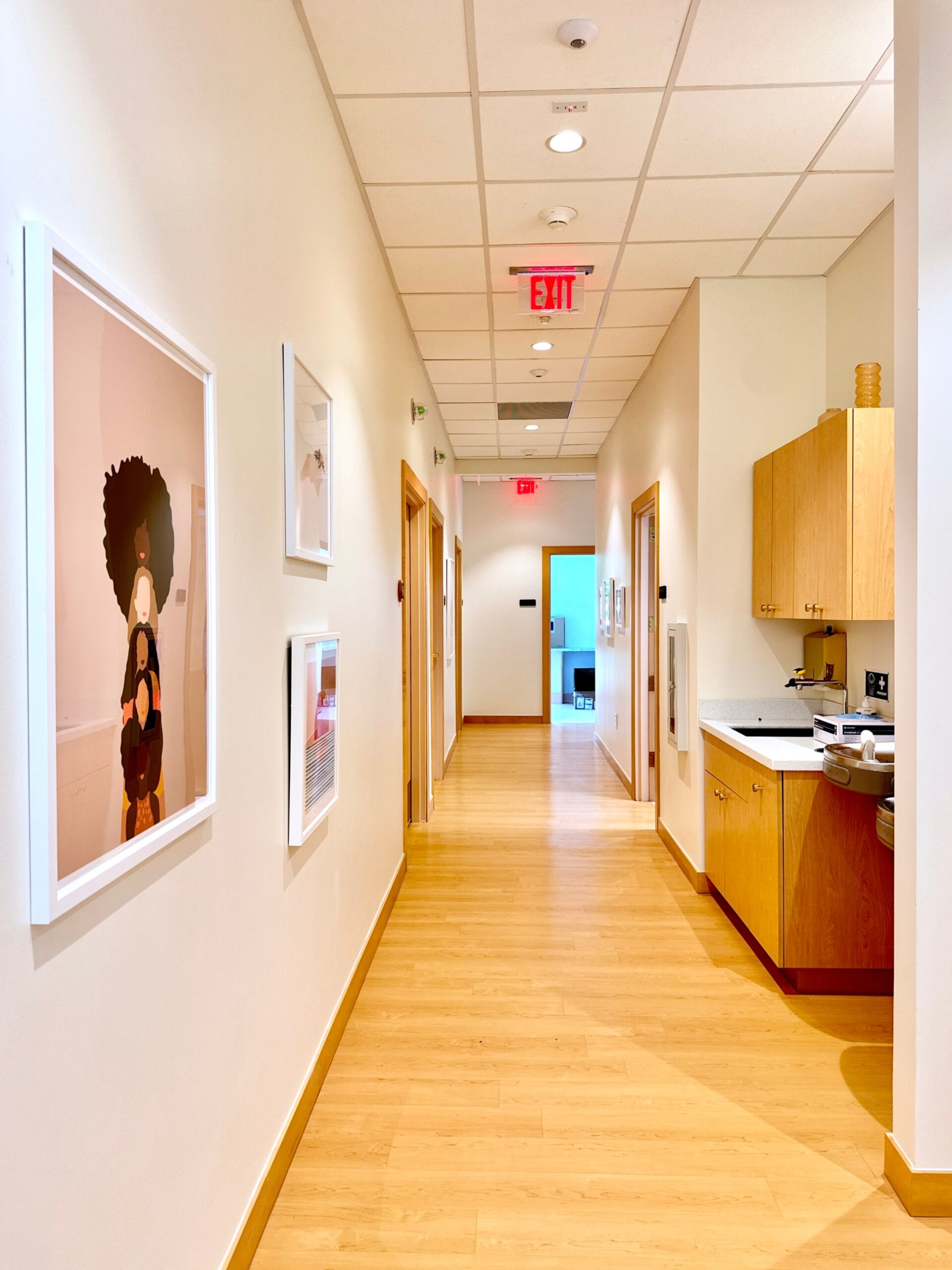 The Kindbody facility in Charlotte, located in a one-story building at the intersection of the historic Myers Park and Eastover neighborhoods, is designed to feel more like a chic, comfortable hangout than a traditional medical clinic. The goal is to create a welcoming and less intimidating environment for patients. The clinic is situated in a community-centered district known for tree-lined streets and stately homes. The building itself is a modern, 5,126 square-foot office space that blends into the professional yet inviting neighborhood aesthetic.