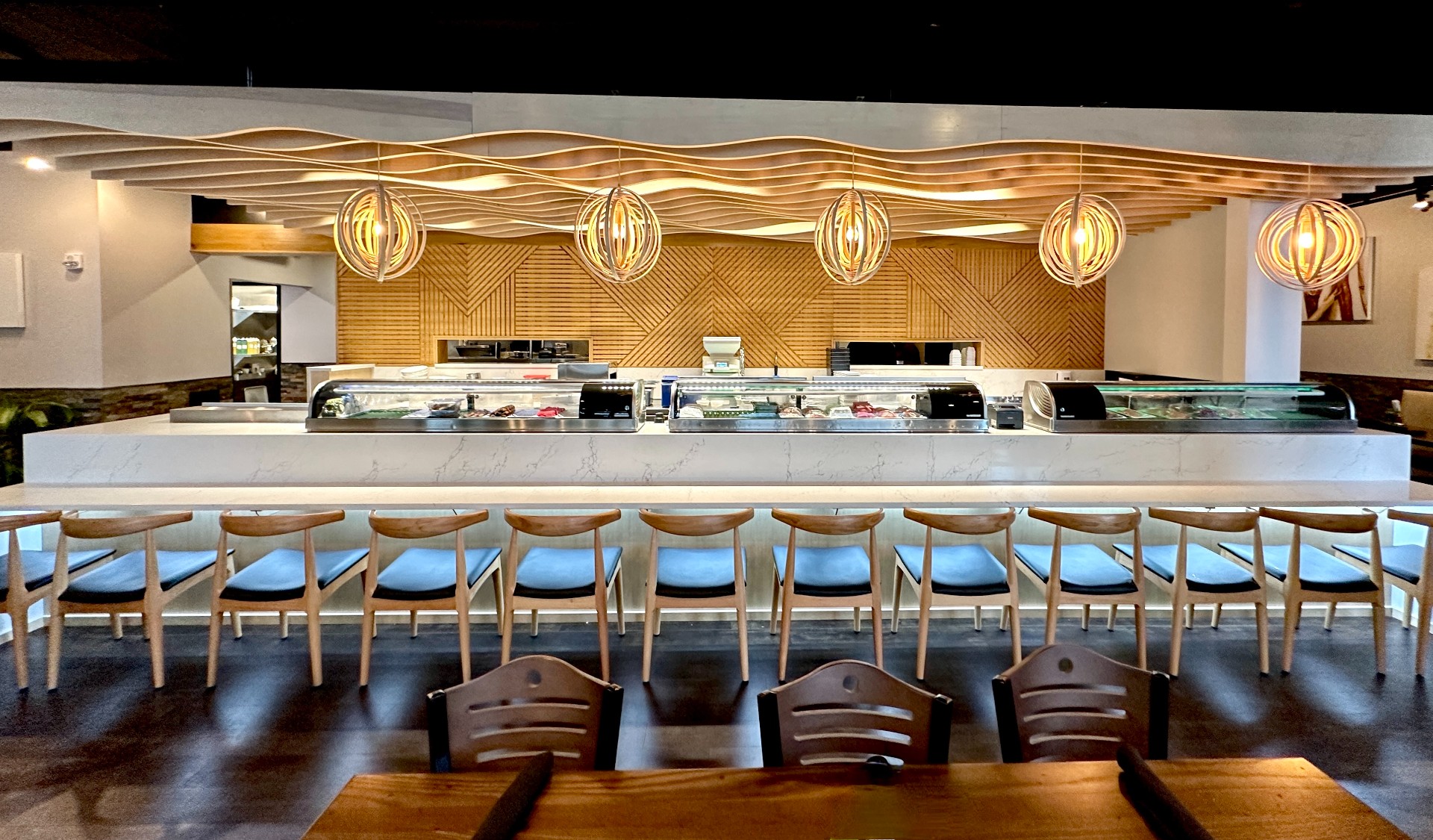 Electrical: 3 phase power to accommodate the specialized equipment such as the hood exhaust, walk in cooler, and other kitchen equipment; lighting control systems and high-end light fixtures